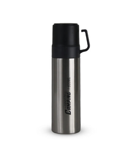 Camping Series Insulated Thermos – 600ml Brushed Stainless Steel Flask with Integrated Handle Lid