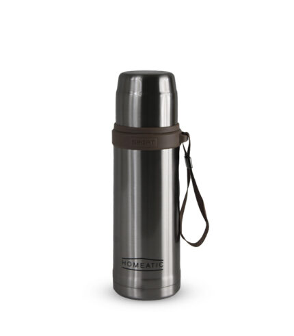 HOMEATIC “SPORT” Insulated Stainless Steel Vacuum Flask – 17oz/500ml Thermos with Built-in Cup and Carry Strap